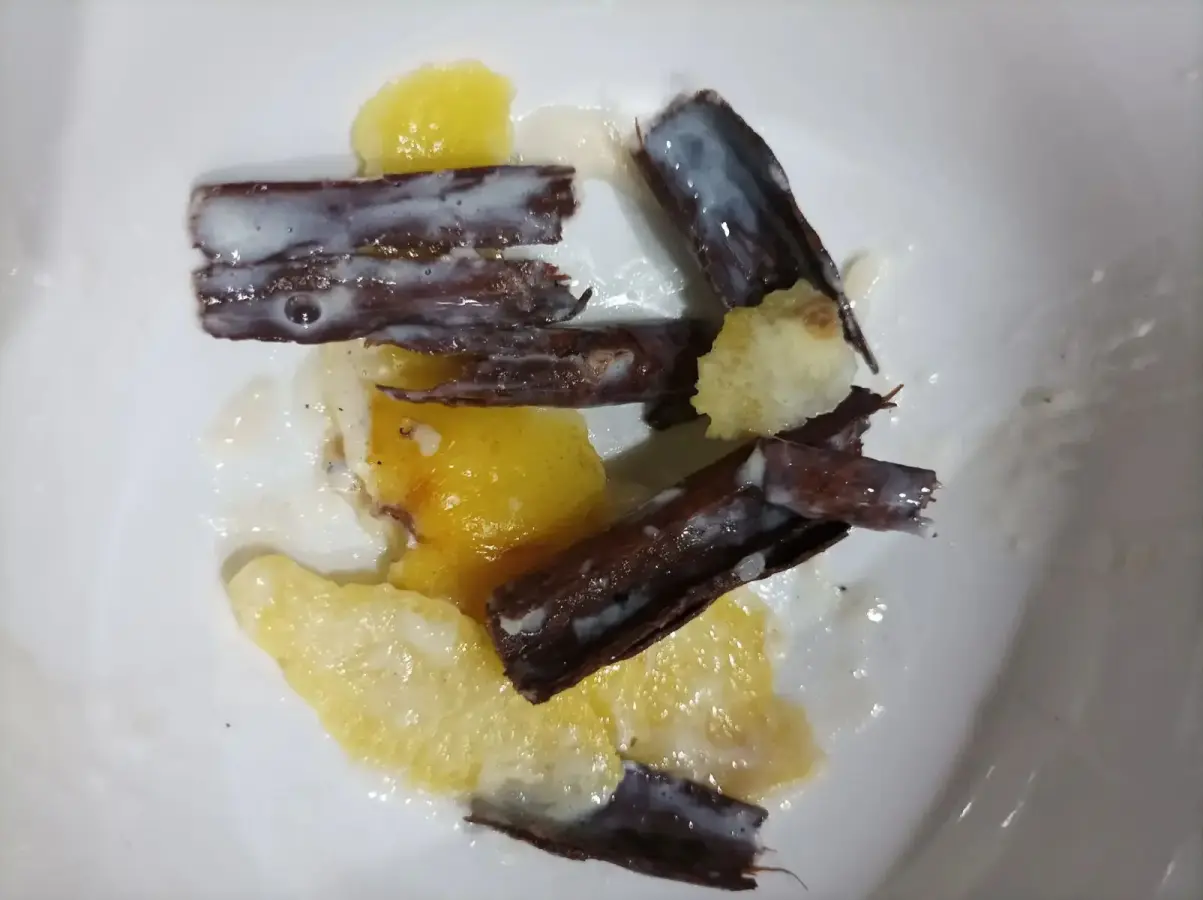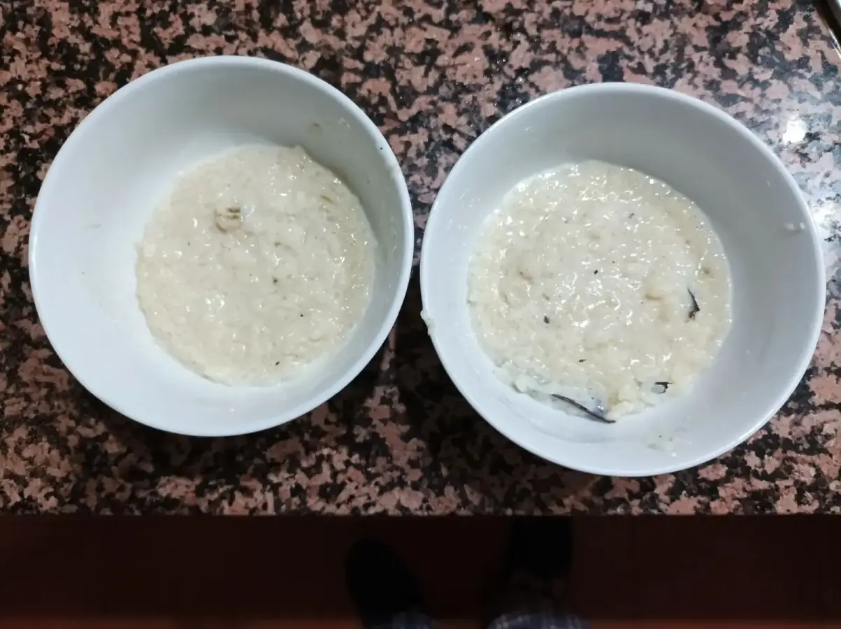 Estas son las dos raciones apartadas al final de la cocción. Reconozco que están sequeronas. Deben quedar con más caldo pues se va reduciendo este con el paso de las horas quedando al final un engrudo en vez de un delicioso postre