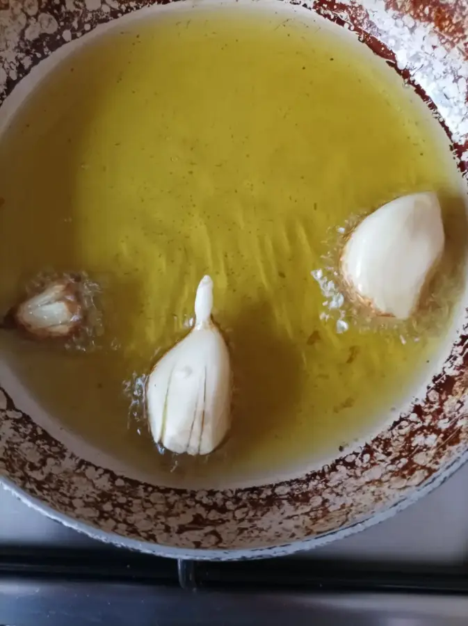 Los ajos, con un corte longitudinal, deben quedar fritos tostados.