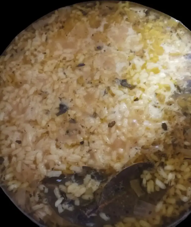 Siempre tengo agua hirviendo en otro fuego por si hay que añadirle algo de líquido a la cocción del arroz. A mí me gusta que quede meloso pero sin caldo.