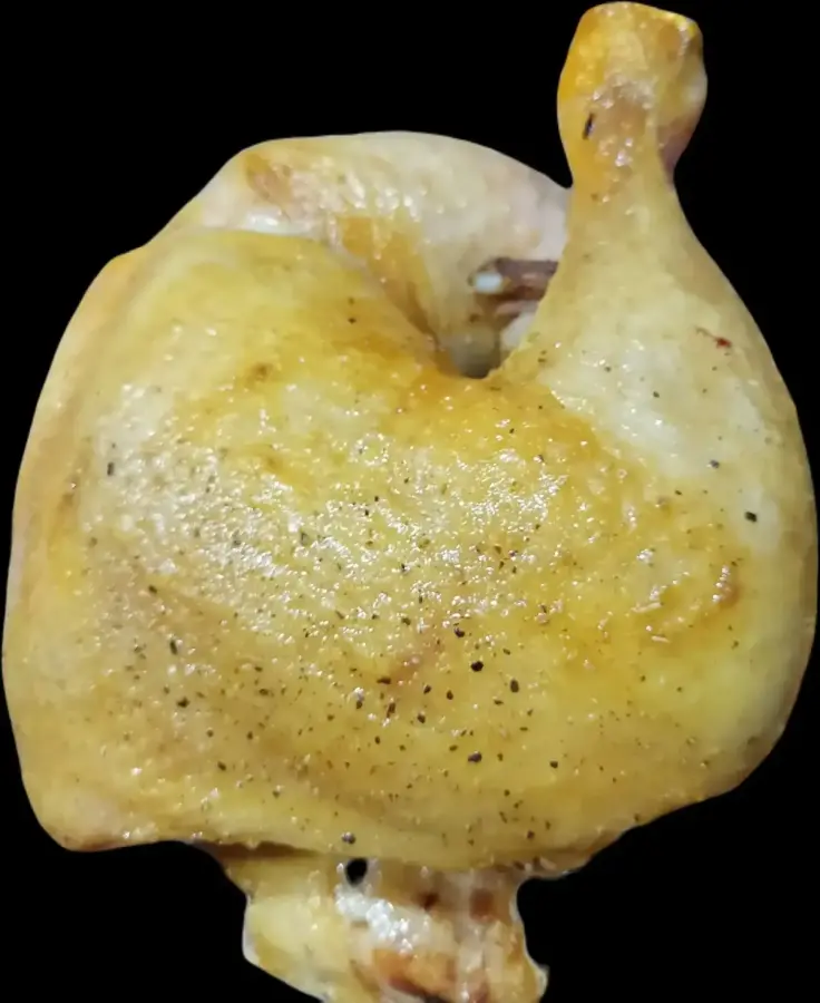 Los cuartos traseros de pollo crudo para salpimentarlos
