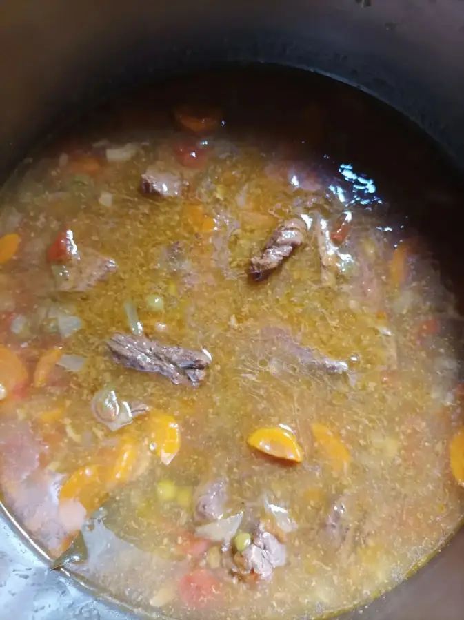 Añadimos agua hirviendo y dejamos que cueza hasta que esté tierna la carne o lo ponemos en la olla a presión 20 minutos a presión alta.