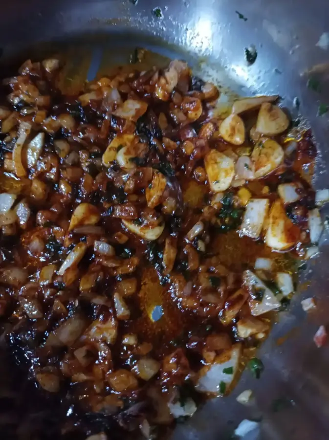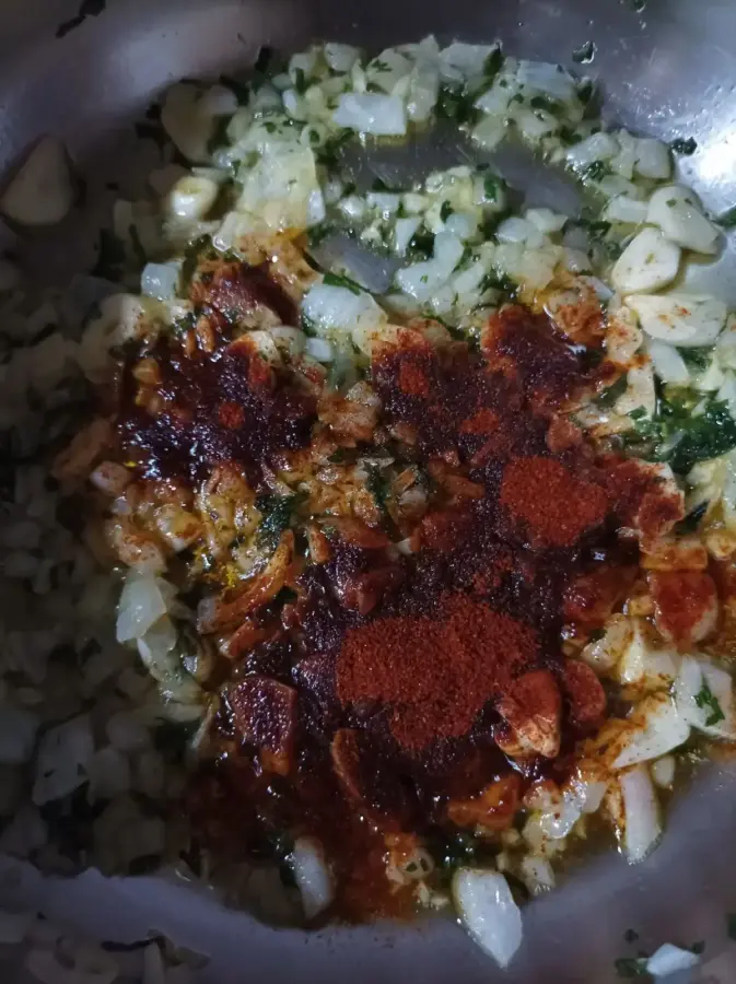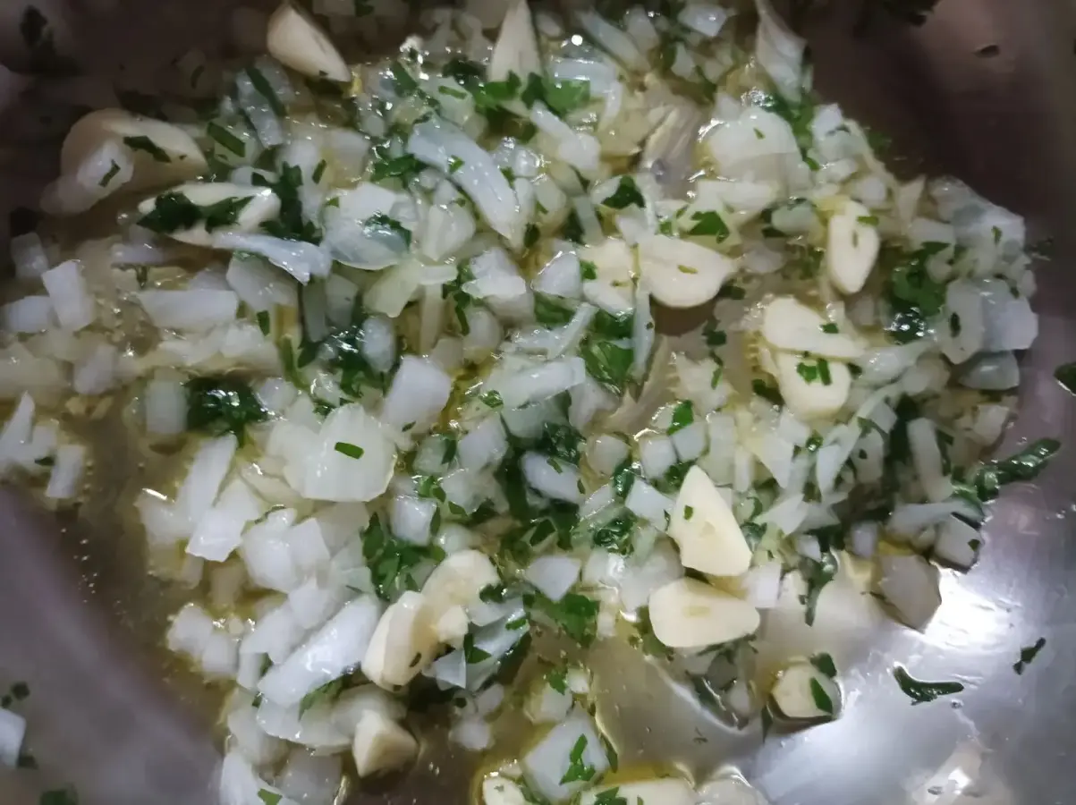 Hacemos el sofrito con el ajo, la cebolla y el perejil