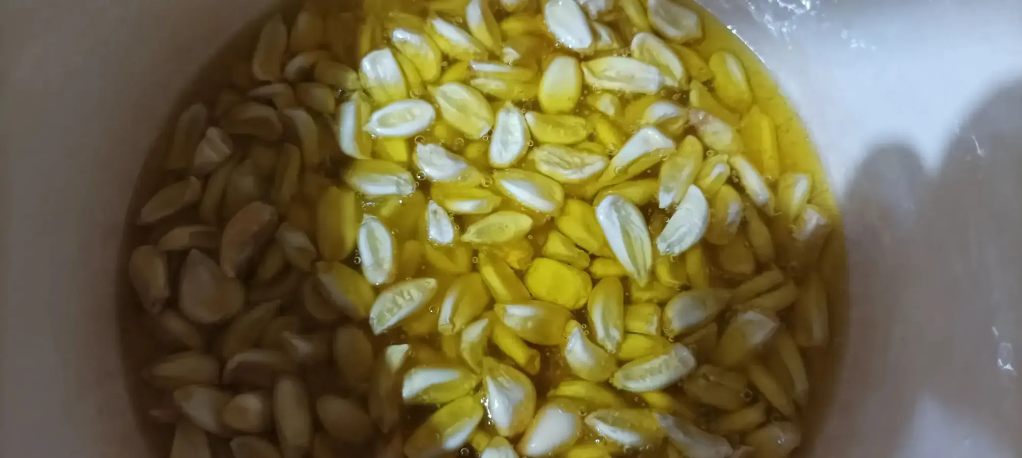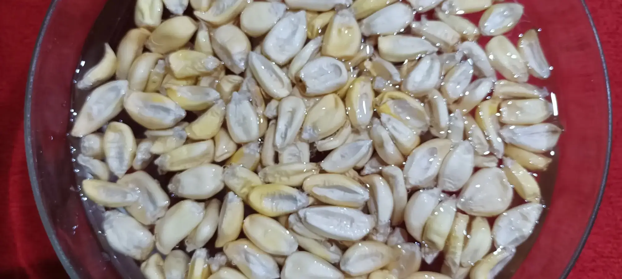 Se remoja el maíz durante al menos 30 minutos. La leve hidratación permitirá que los granos queden limpios. Además, al freirse quedarán crujientes por fuera y blandos por dentro.