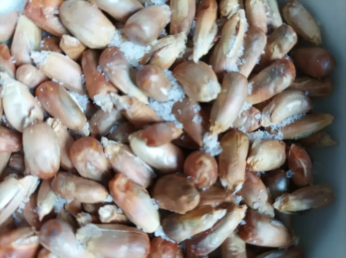 Apartamos sobre papel absorvente el maiz frito eliminando la grasa sobrante y le añadimos la sal al gusto.