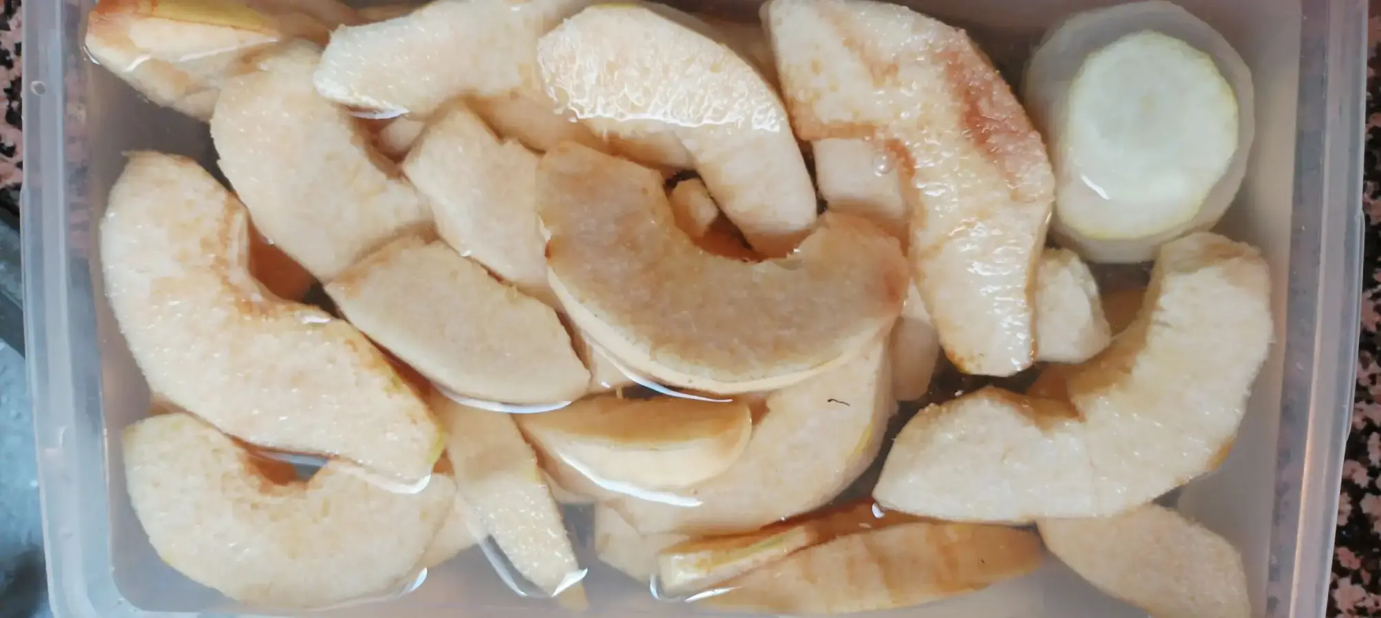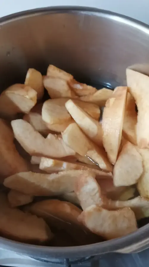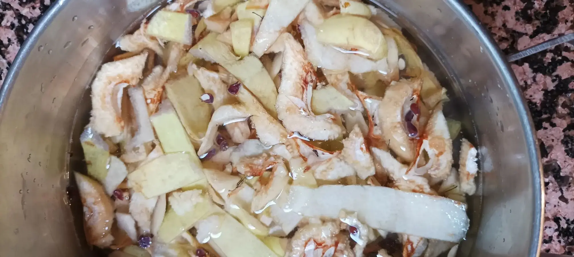 Lo de cocer los desperdicios y emplear ese agua para hacer el almíbar de la compota es una aportación mía. Nunca vi que mi madre lo hiciera.