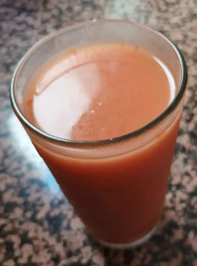 Se vierte en un recipiente adecuado para el frigorífico, se pone algo de agua fría en la batidora y se aplica potencia máxima para limpiar el vaso y se añade el resultado al recipiente anterior