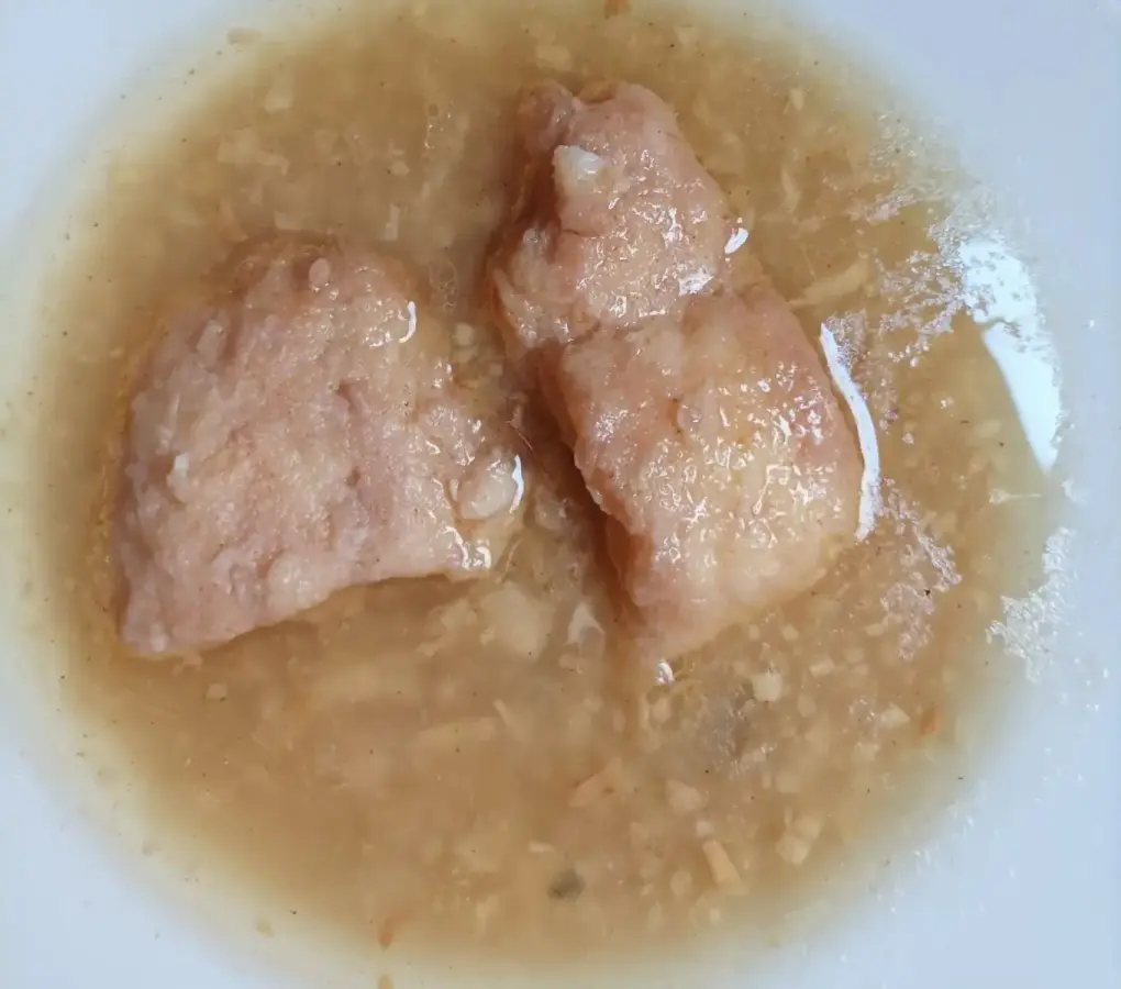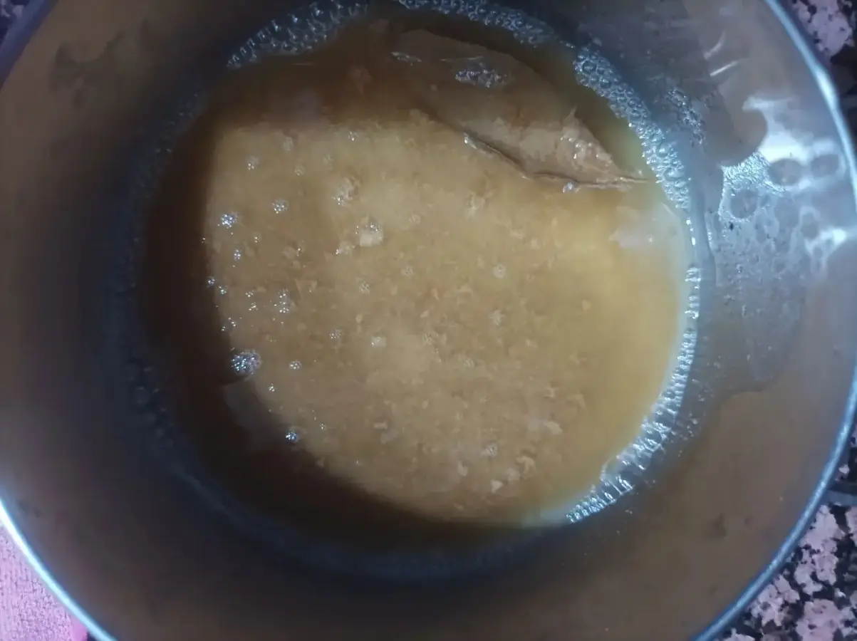 Se pican ajos y se frien hasta que se doren. Se frie harina. Cuando ya esté todo dorado se le añade unas gotitas de vinagre, una hoja de laurel y agua y se deja que hierva un poco. Se añade el pescado y se deja un poco que hierva.