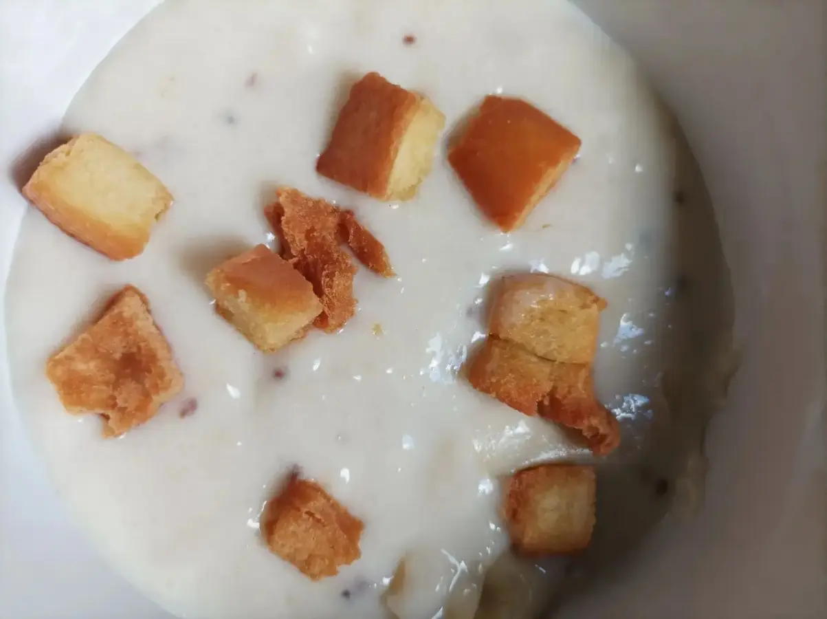 Se pone el aceite a calentar y se frie la matalauva. Se vuelca todo en la leche y se le añade la harina y un poco de azúcar. Se pone en la candela y se le va añadiendo la harina poco a poco. Se frien los taquitos de pan y se les pone en el momento de servirlas.