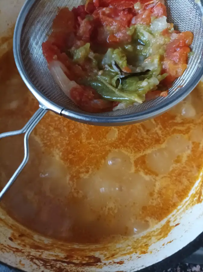 Apartamos las verduras en un colador y las estrujamos para sacarles todo el jugo