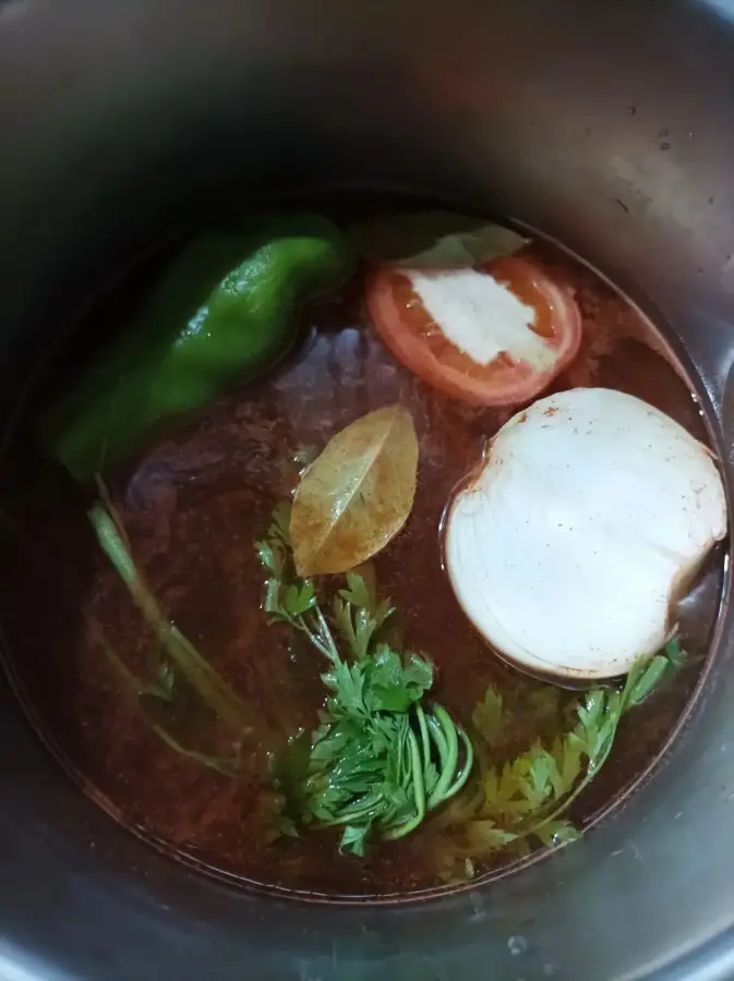 Se pone agua a hervir. Cuando está caliente se echan todos los ingredientes. Cuece hasta que esté tierno. En Olla a presión, media hora.