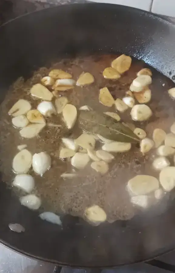 Cuando los ajos estén ablandados, poner un poco de sal y medio vaso de agua, dejando unos minutos que se termine de hacer la salsa.