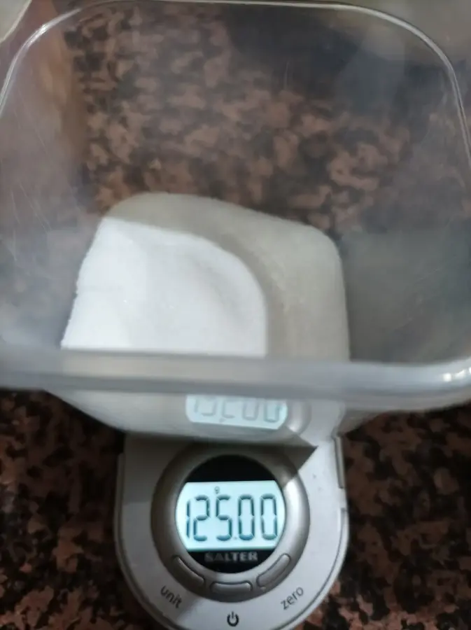 Pesamos el azúcar para la mitad de la masa...