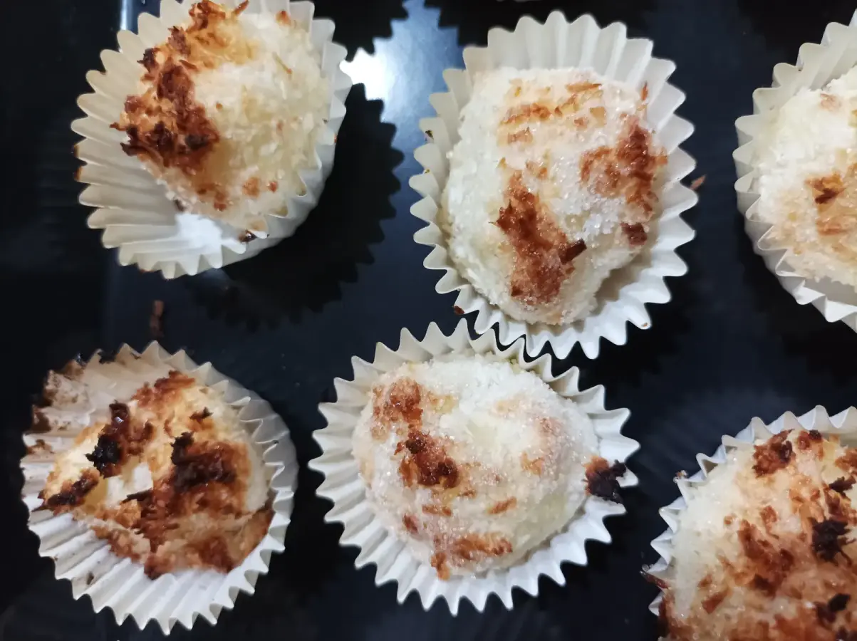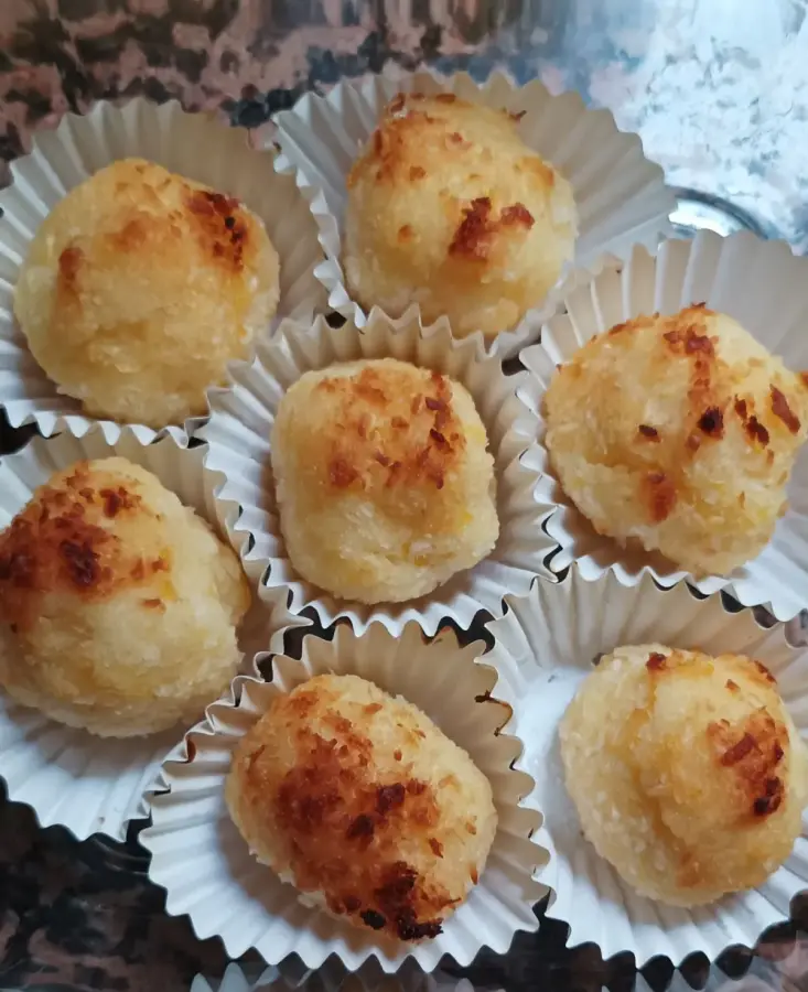 Bocaditos de coco, papa, huevo y azúcar